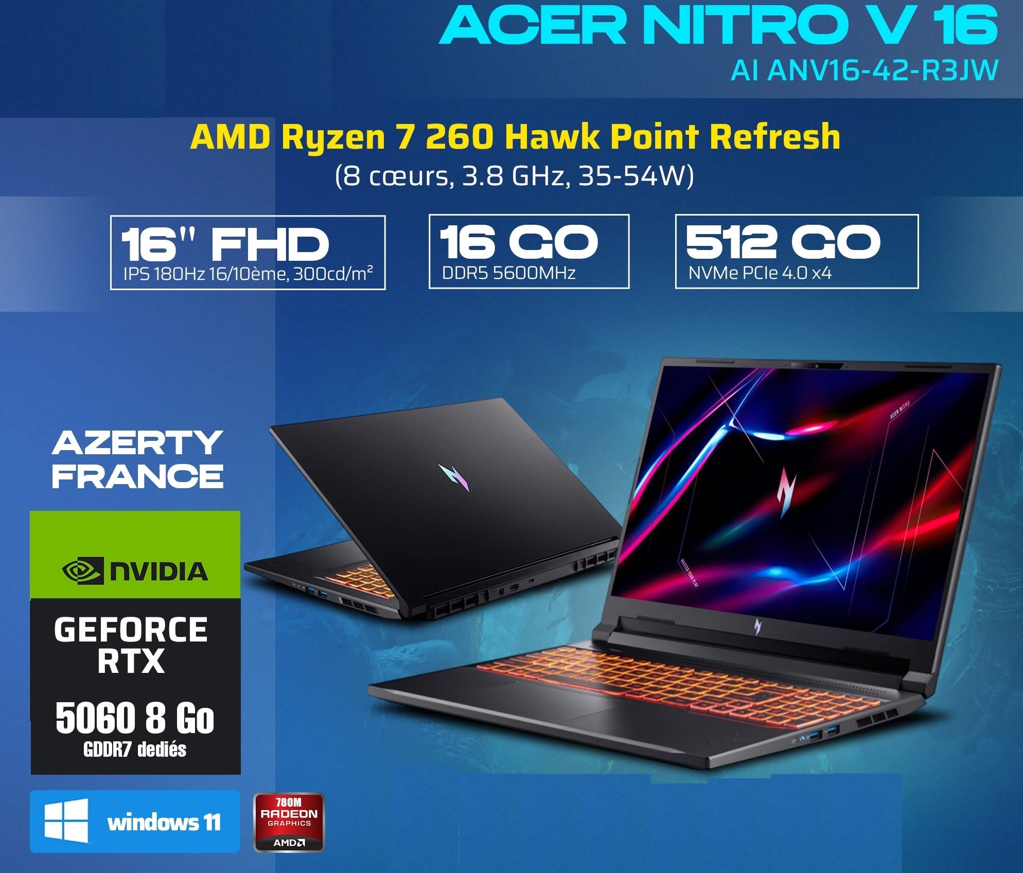 ACER NITRO V16 – Ryzen 7 Hawk Point Refresh | Puissance & Gaming Premium