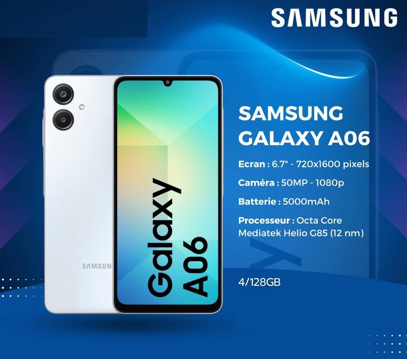 📱 Samsung Galaxy A06 – 128 Go – Écran 6,7" HD+